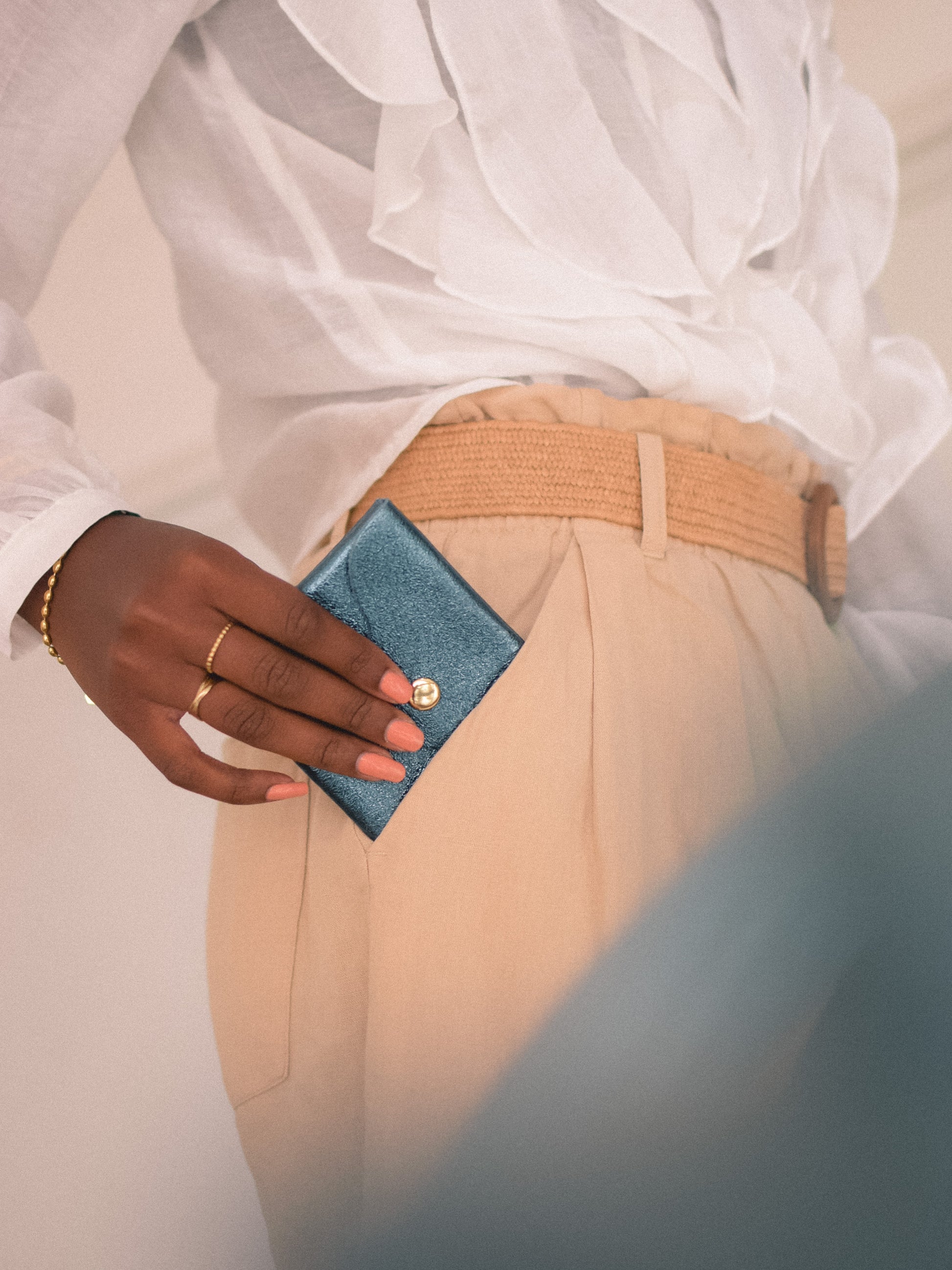 Votre petite maroquinerie en cuir véritable mérite un peu d'attention. Pour en prendre soin, passez occasionnellement un doux chiffon imprégné de lait hydratant sur la surface métallisée en faisant des mouvements circulaires. Ainsi, vous lui redonnerez tout son éclat et la nourrirez en profondeur.