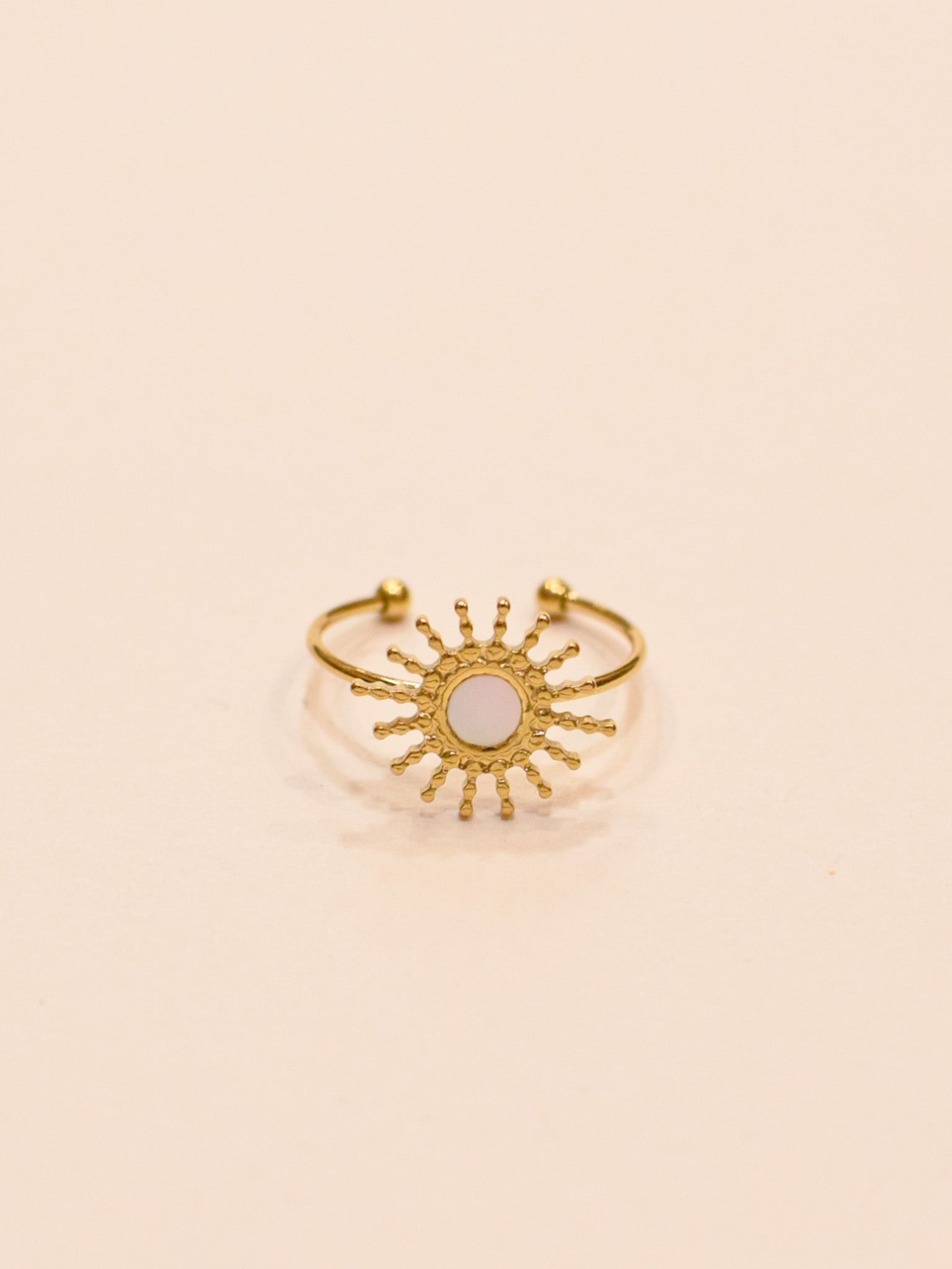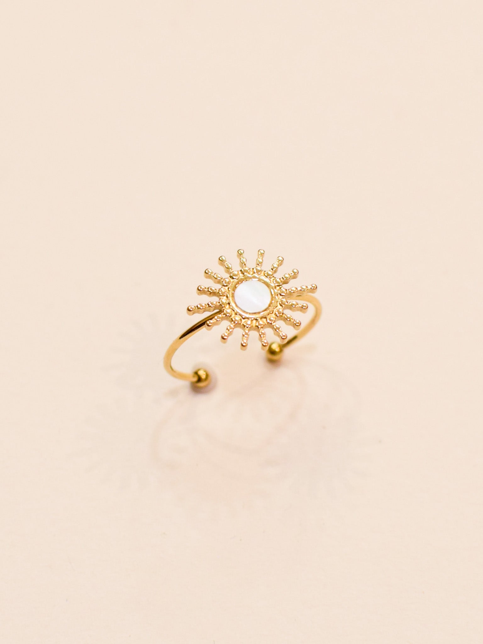 La bague ELYS vous illuminera, un petit soleil orné d'un cercle de nacre est parfaite pour vous.