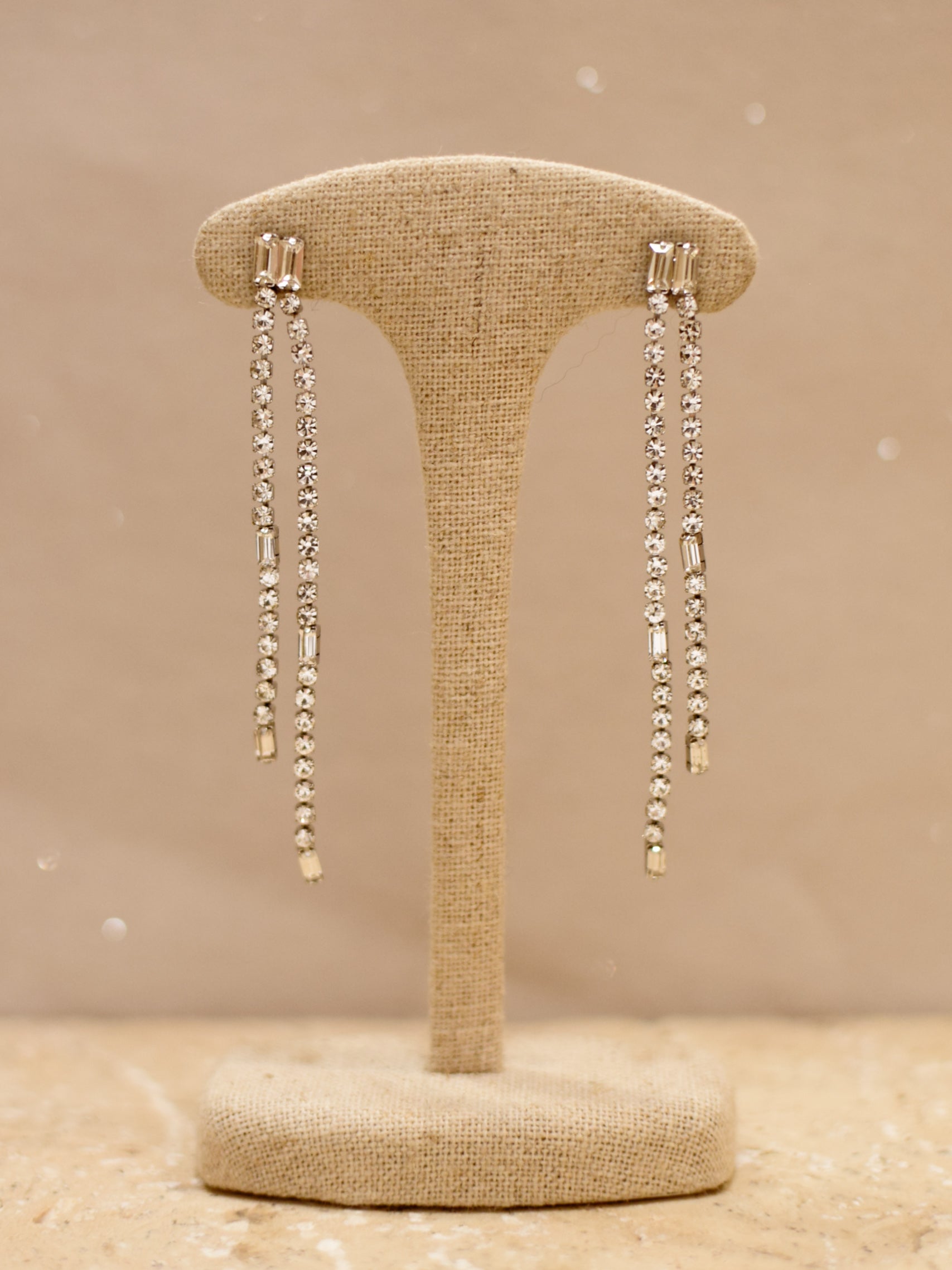 Avec ses deux rivières de diamants, les boucles d'oreilles matchent avec toutes vos tenues de fêtes!