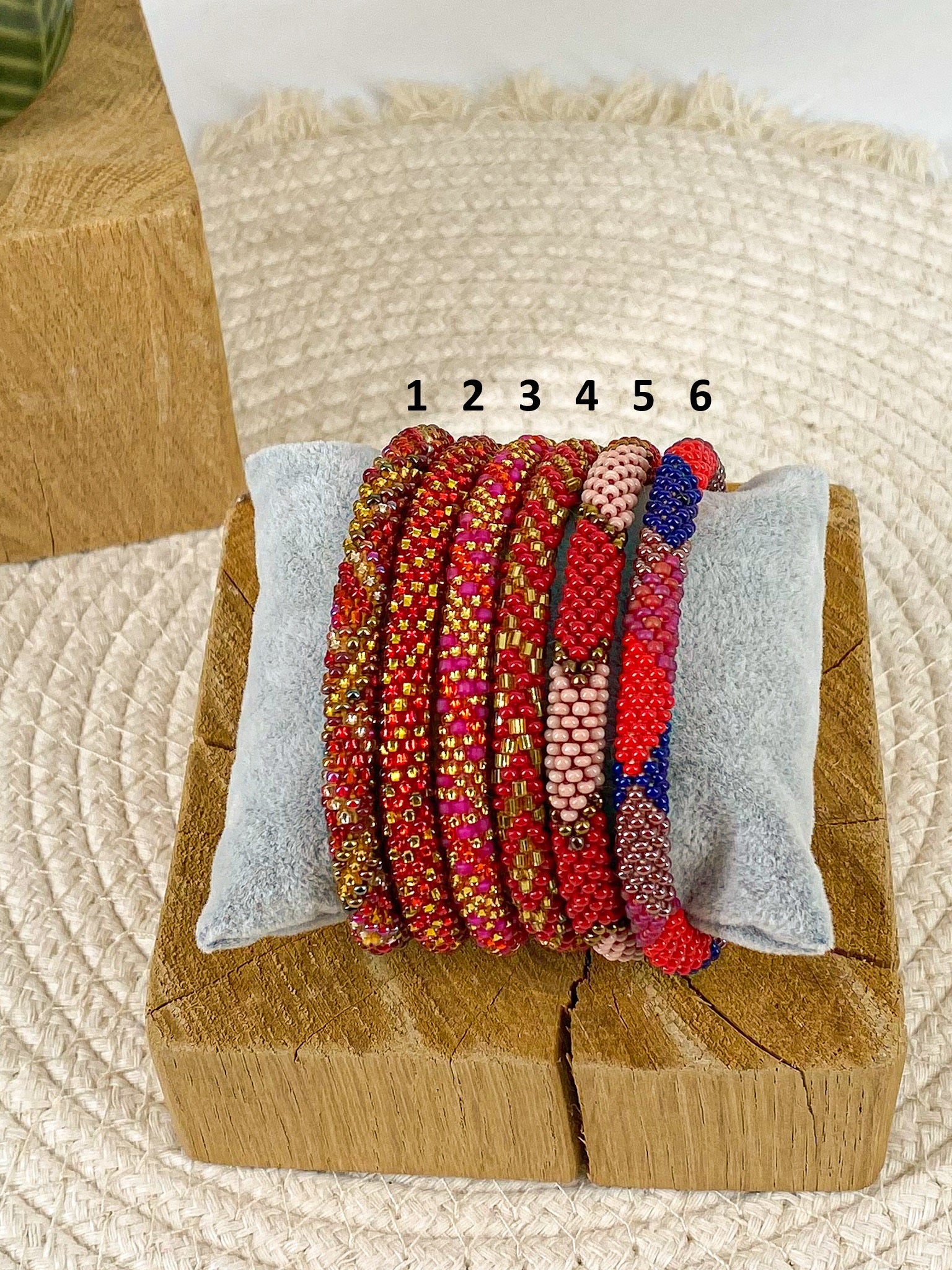 Petites Pépites a découvert ces charmants bracelets artisanaux fabriqués au Népal. Ils sont fabriqués à la main en perles de verre crochetées sur du fil de coton. On les enroule autour du poignet pour les mettre, ils s'adapteront à votre taille.