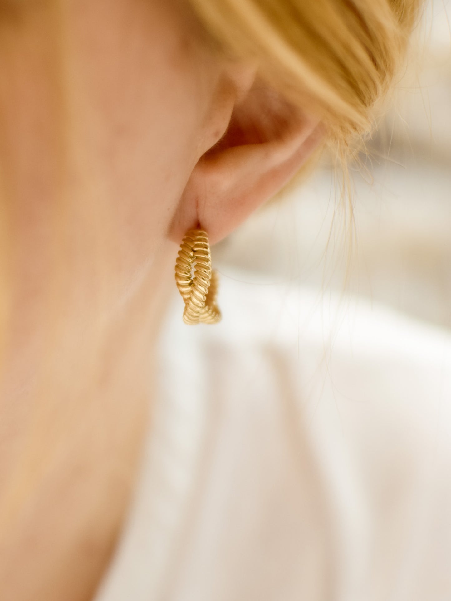 Les lignes rainurées de la boucle d'oreille ENZA s'entremêlent apportant une touche élégante à ce classique.